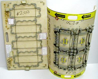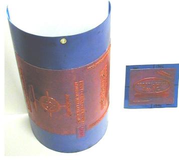 | A Flat Cutting die is on the left. A Rotary die is on the right. Both of these dies cut four (4) end caps (4 out). |